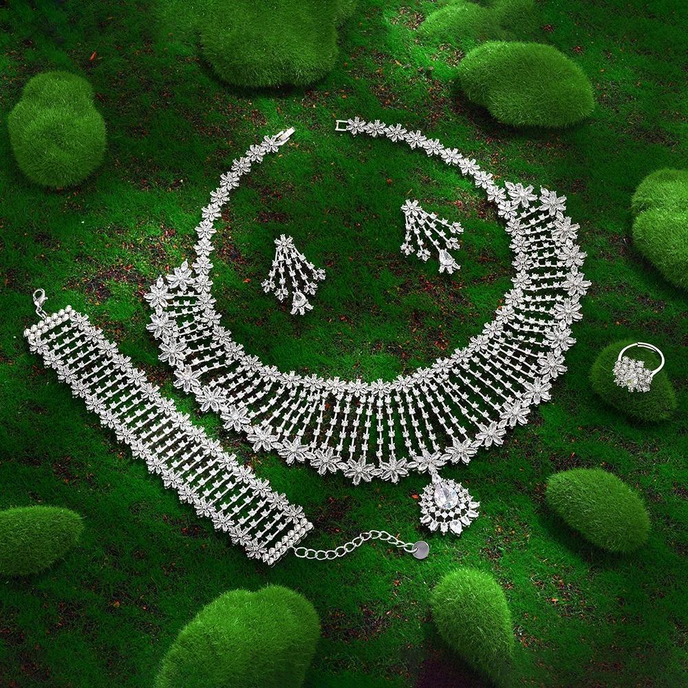 - اسم المنتج: مجموعة نسائية فاخرة 4 قطع من الزركون للمناسبات والزفاف 2023