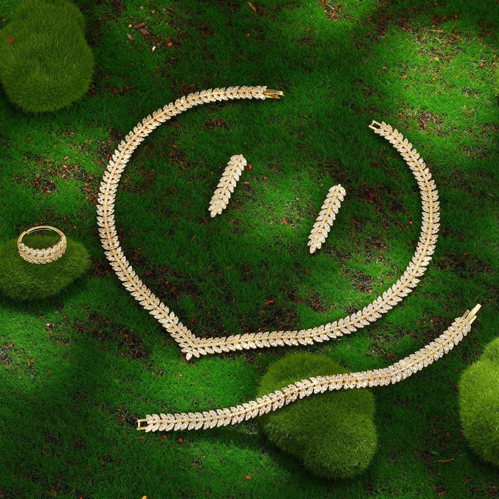 طقم مجوهرات ذهبية 4 قطع – زركونيا مكعب لأزياء المرأة العصرية
