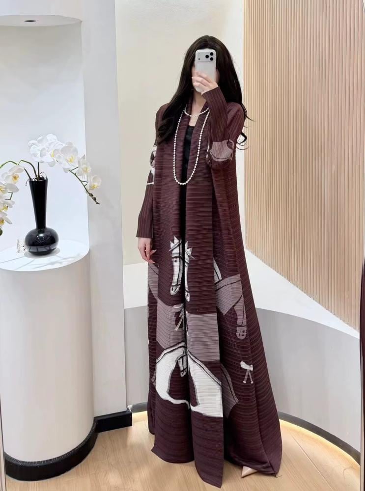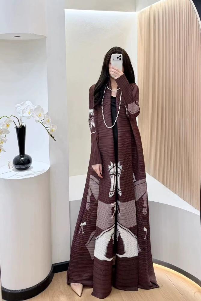 - اسم المنتج: عباية طويلة بطبعة حصان بني